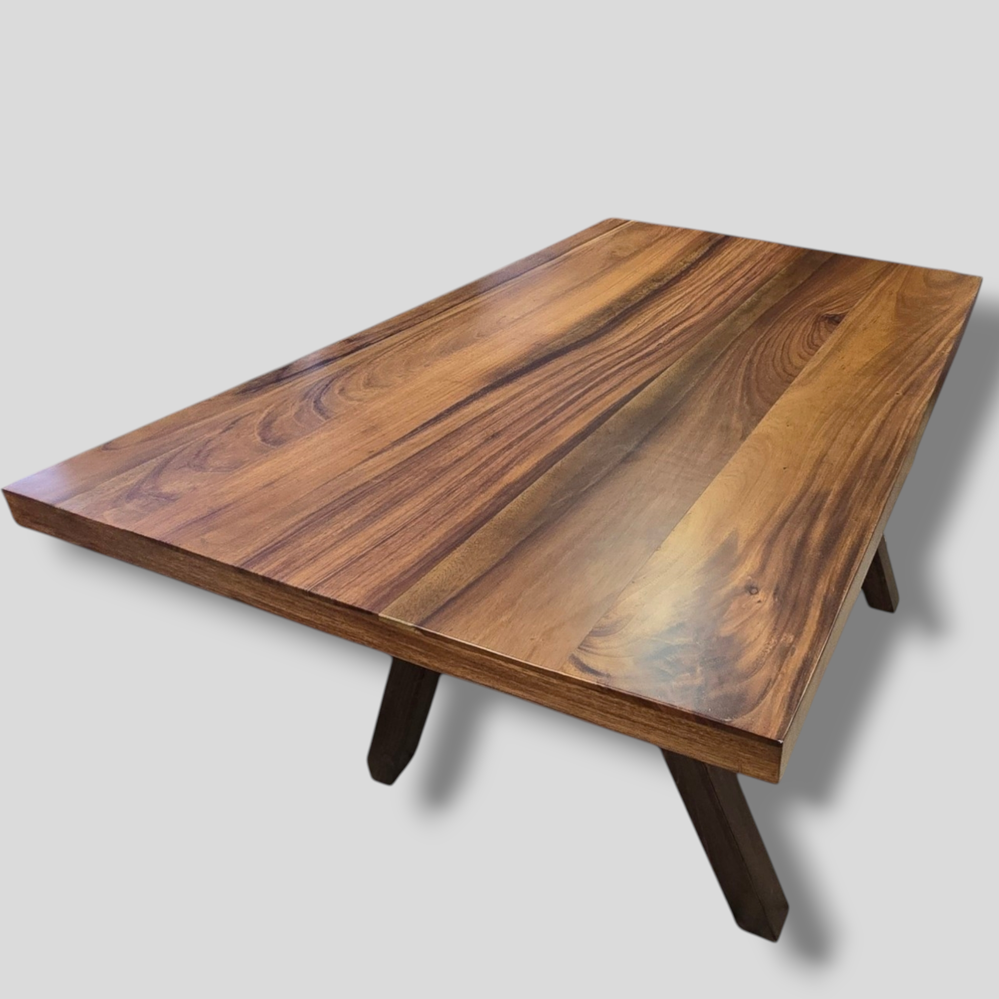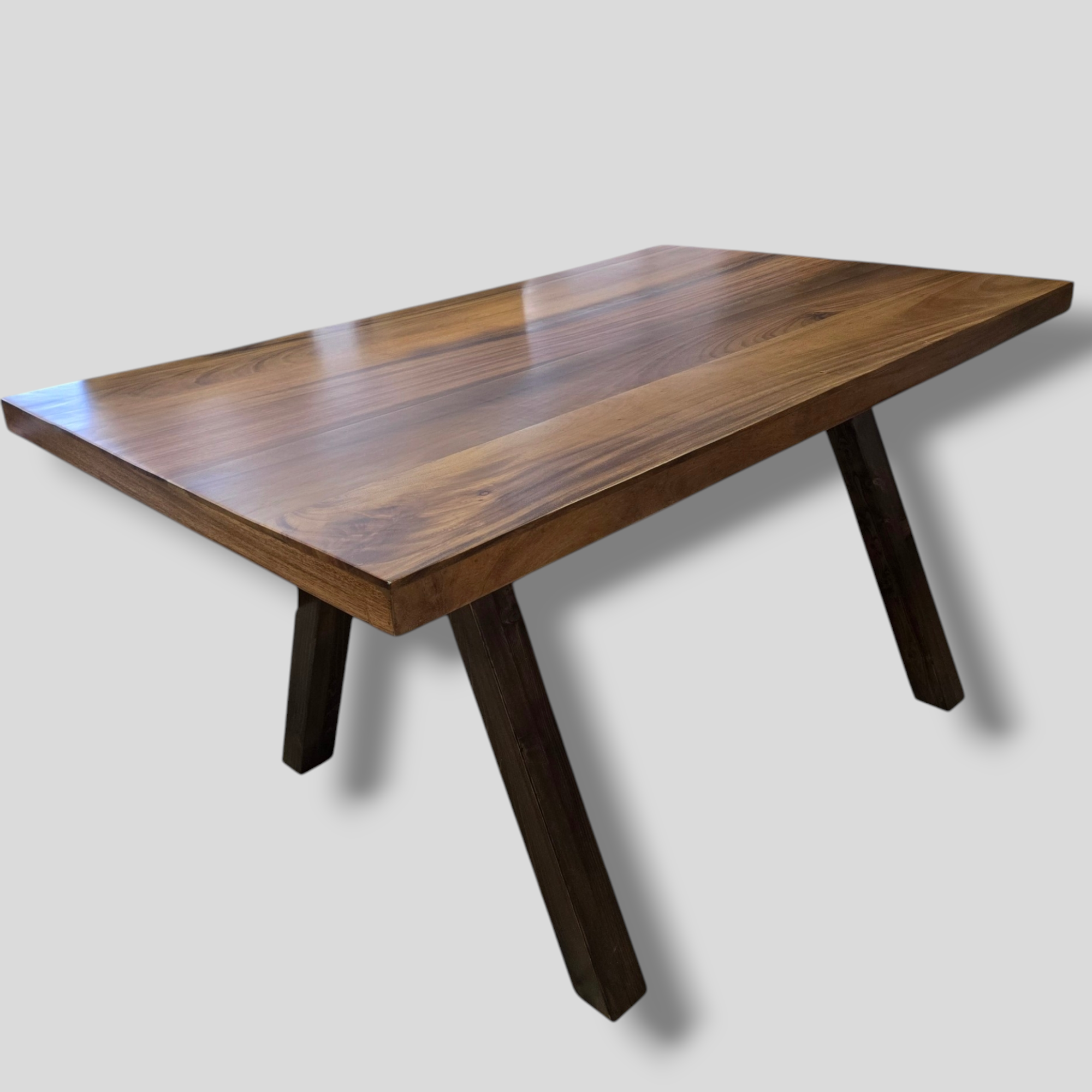 La mesa Bari para 8 personas   este modelo es elaborado artesanalmente con madera solida de Parota con base de pino canadiense entintado sus pedidas son 200×100 cm.
