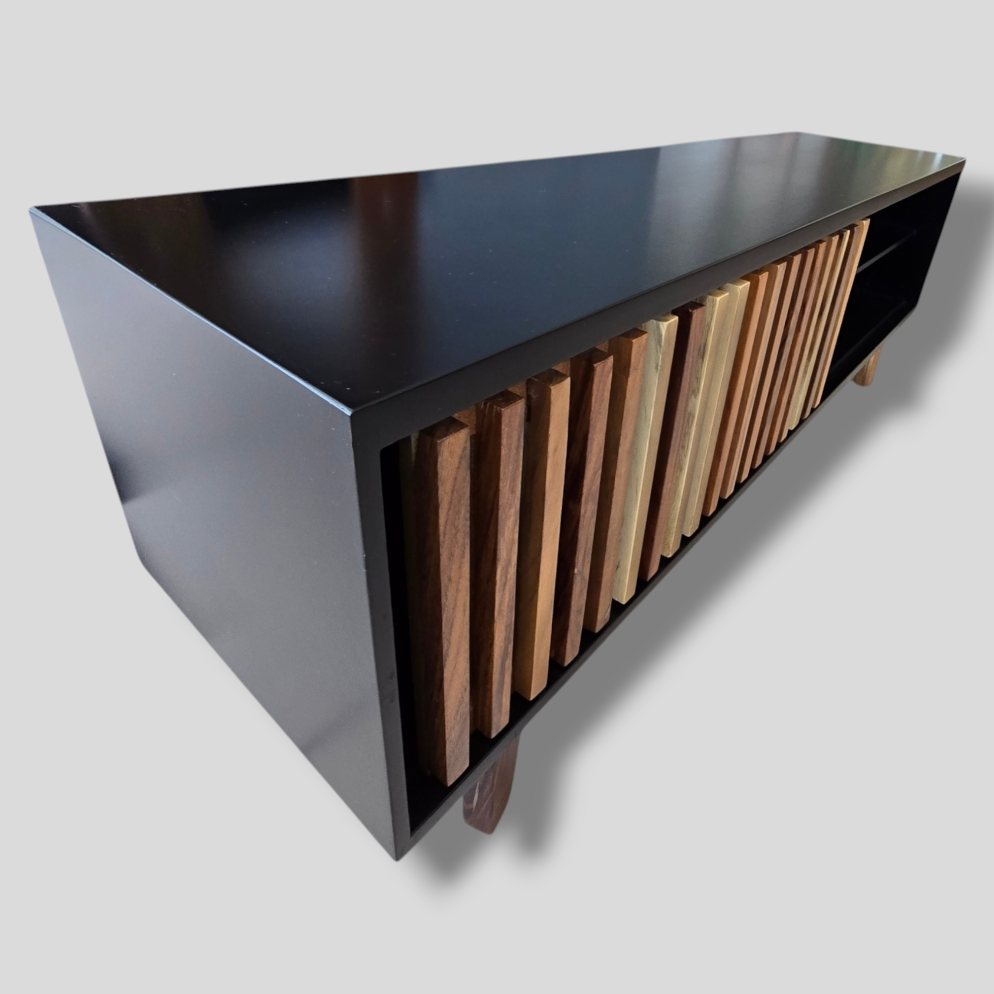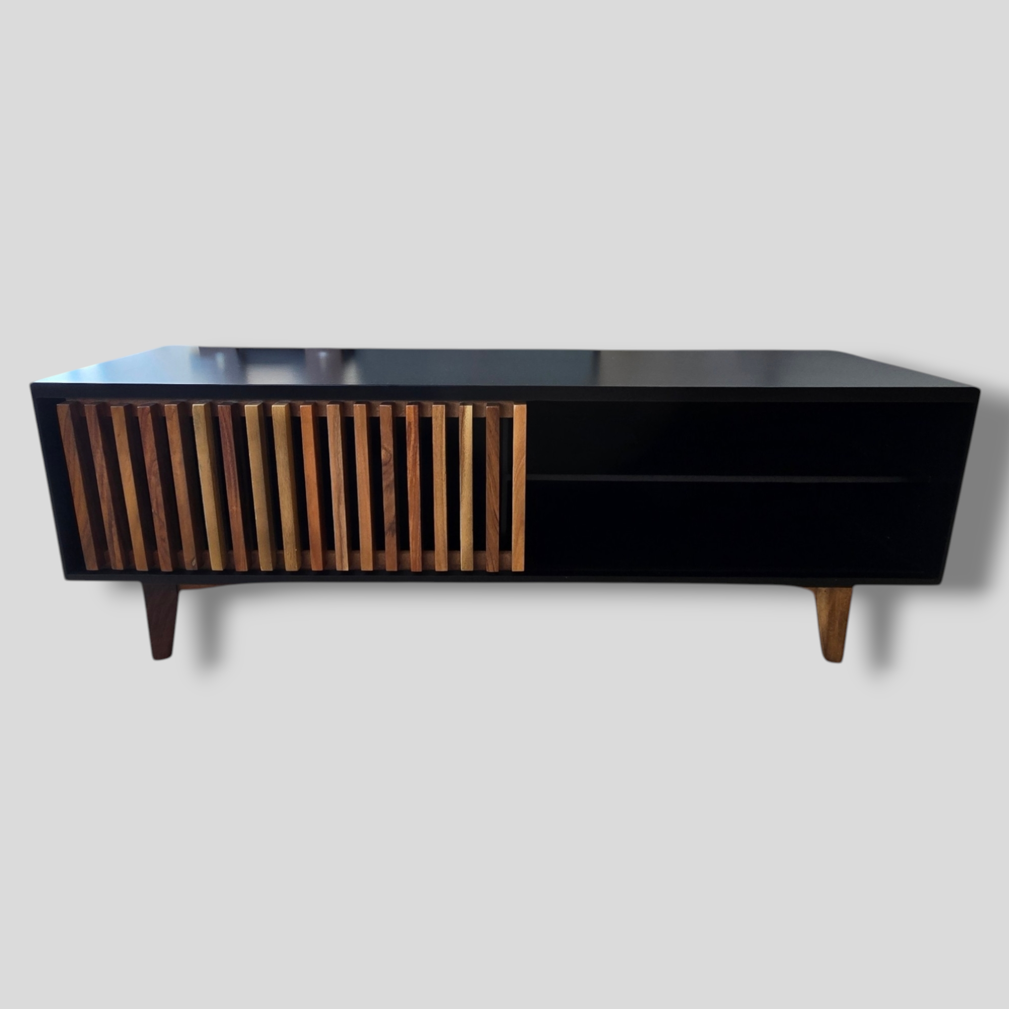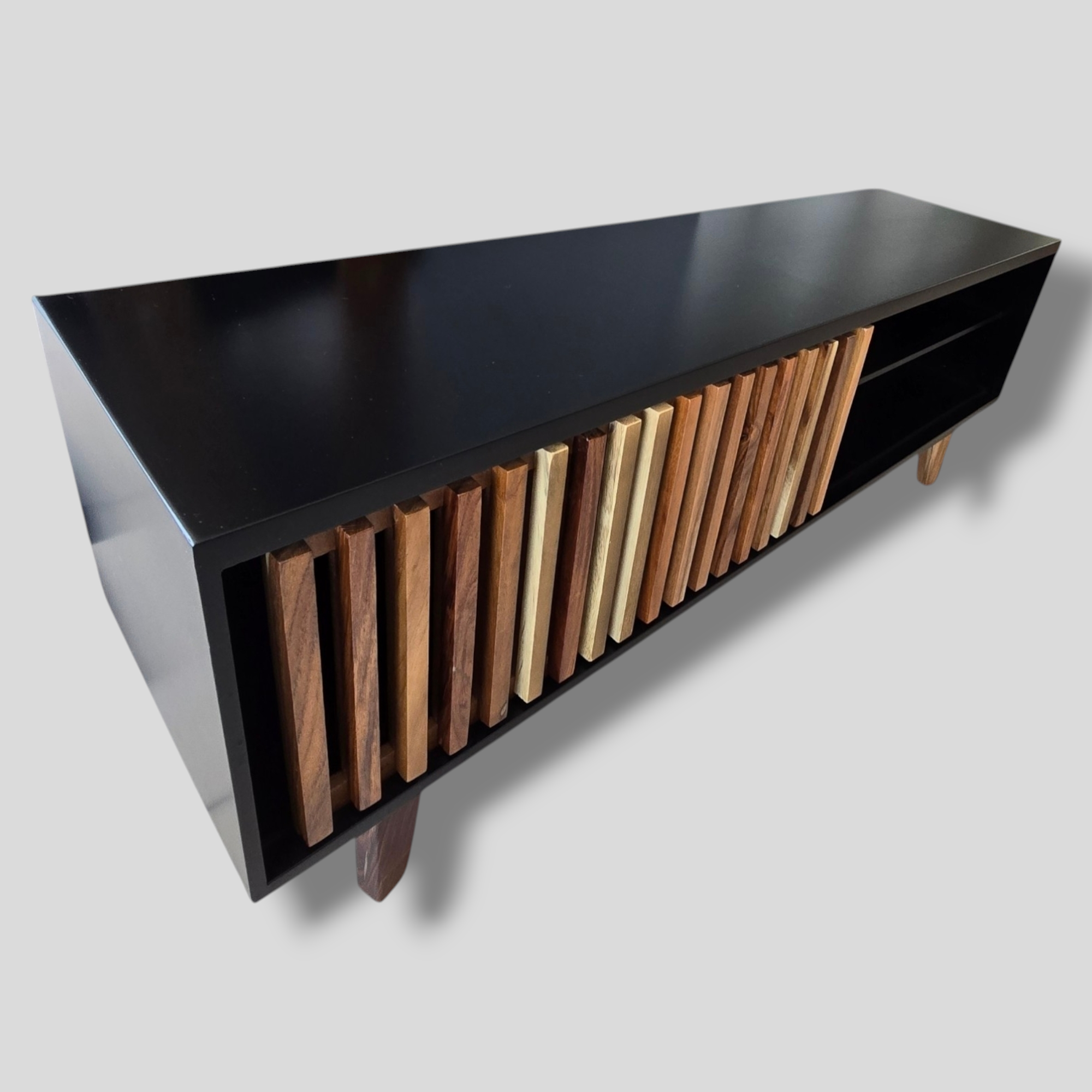 El Porta Tv Kiu esta elaborado con madera de Parota y MDF calidad premium con medidas de 120 cm. De largo por 40cm. De profundidad y 60cm. De altura.